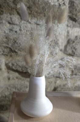 Enfin, il n’est pas rare que des fleurs séchées, cultivées par mes soins autour de l’atelier viennent décorer des vases ou des créations en terre.